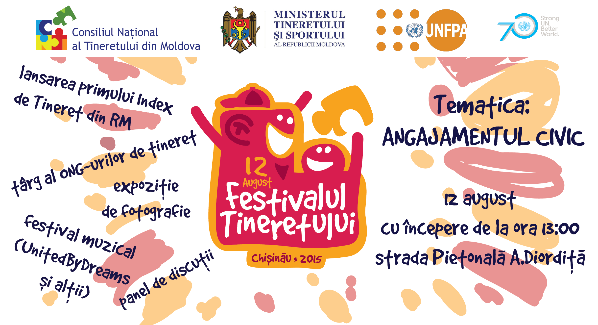 În acest an, Consiliul Național al Tineretului din Moldova, cu suportul Ministerului Tineretului și Sportului Republicii Moldova și Organizația Națiunilor Unite în Moldova, organizează în premieră Festivalul Tinerilor în cadrul Zilei Internaționale a Tineretului, sărbătorită la data de 12 august. Evenimentul va avea loc pe strada pietonală din capitală, începând cu ora 13.00. Tematica Festivalului este angajamentul civic al tinerilor.